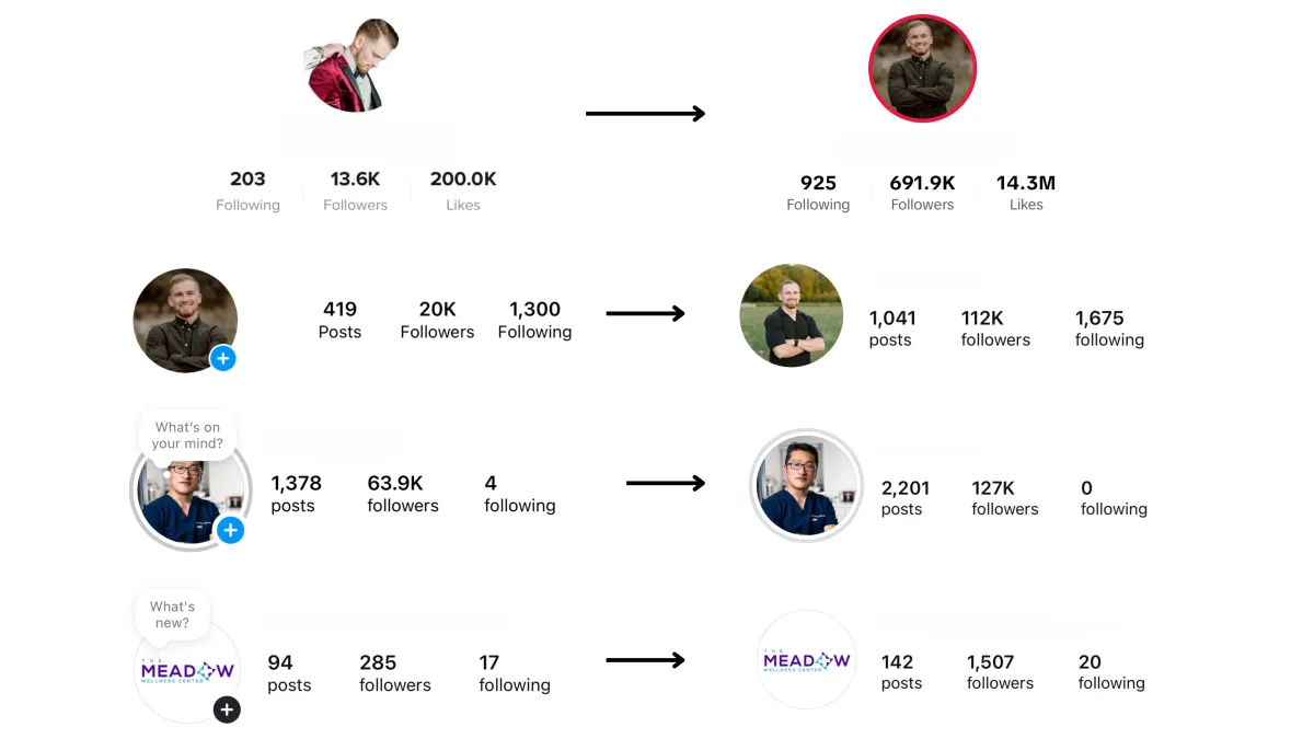 You can expect: a professional, consistent online presence, more engagement, and a growing audience. Most importantly, our focus is on turning that growth into new clients, patients, or customers.